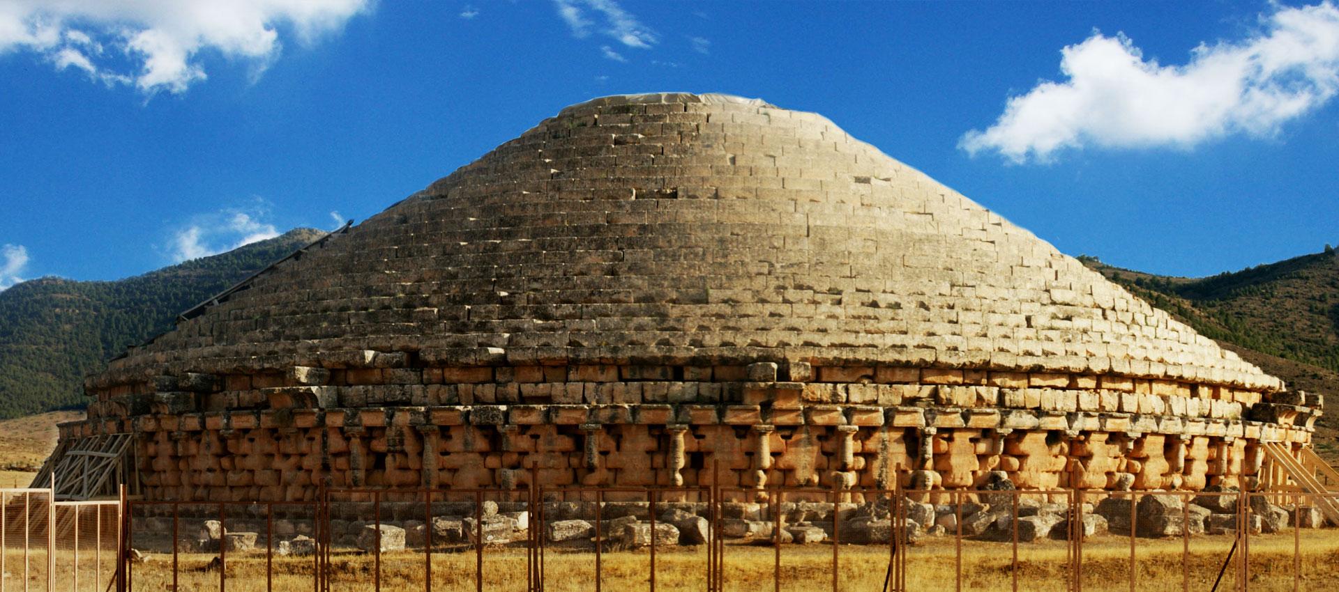 Das Medracen (auf Berberisch: ⵉⵎⴷⵖⴰⵙⵏ, imedɣasen) ist ein numidisches Mausoleum aus dem 3. Jahrhundert v. Chr. BC, liegt in Algerien im Aurès, auf dem Gebiet der Gemeinde Boumia, in der Wilaya von Batna. Der Madracen ist ein Steintumulus mit einem Durchmesser von 58,9 Metern und einer Höhe von 18,5 Metern. Es hat einen zylindrischen Teil, der an seinem Umfang mit 60 dorischen Halbsäulen und drei Scheintüren verziert ist. Es ist das älteste erhaltene antike königliche Mausoleum in Nordafrika. Mittelalterlichen Historikern zufolge hat es seinen Namen von einem König von Numidien, Madghis. Es wurde 2002 von den algerischen Behörden zur Aufnahme in die Liste des Weltkulturerbes eingereicht. Es zählt zu den 100 am stärksten gefährdeten Denkmälern der Welt.