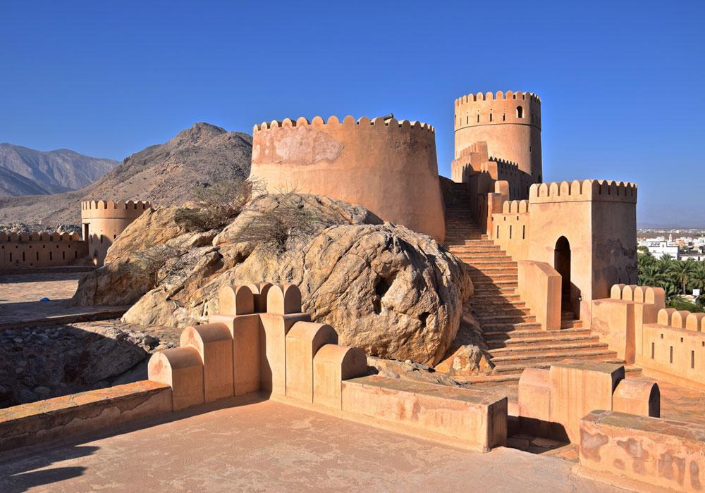 Die Festung von Nakhl, die am Fuß des Dschebel Nakhl liegt, wurde im traditionellen omanischen Stil errichtet und ist auf einem Felsen erbaut, der in das Innere integriert ist. Die eindrucksvolle Architektur umfasst Türme, die im Jahr 1834 unter Imam Said bin Sultan erbaut wurden. Im Museum der Festung sind historische Waffen, Möbel und Handwerksgegenstände ausgestellt. Jeden Freitag findet innerhalb der Festungsmauern ein Ziegenmarkt statt. Die umliegenden Obstgärten sind voller Palmen, und vom Fort aus hat man einen fantastischen Blick auf die al-Batina-Region.