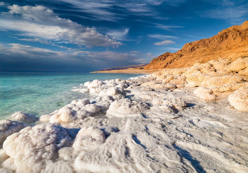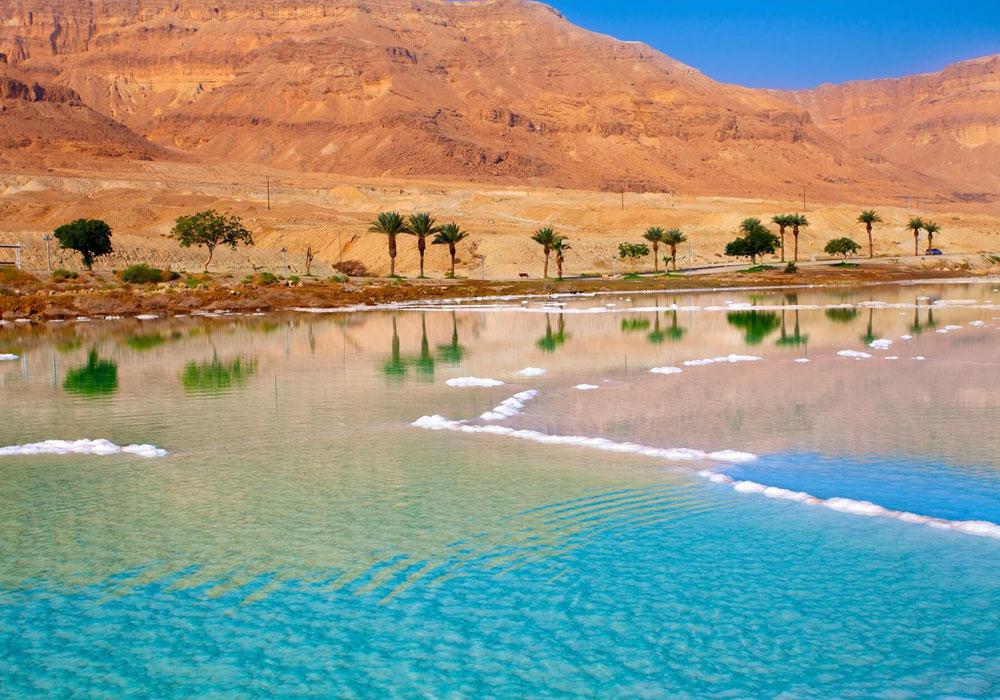 Das Tote Meer, 428 Meter unter dem Meeresspiegel gelegen, ist der tiefstgelegene Binnensee der Welt und liegt zwischen Israel, Jordanien und dem Westjordanland. Mit einem Salzgehalt von bis zu 33 Prozent leuchtet es in einer geheimnisvollen, milchig-blauen Farbe. Seine Mineralien erzeugen besondere Lichteffekte. Nur eine halbe Stunde von Jerusalem entfernt, liegt das Tote Meer in einer historisch bedeutenden Region.