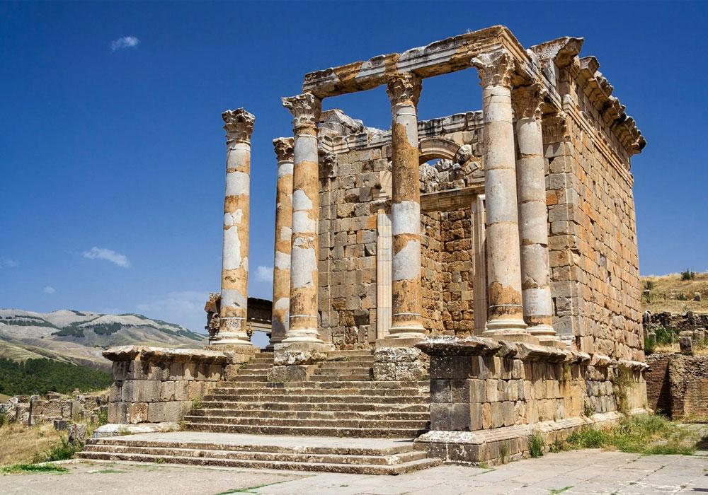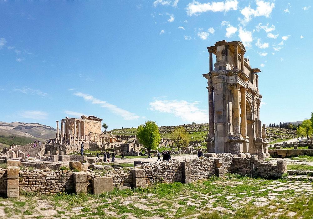 Der Standort Djémila liegt 50 km nordöstlich der Stadt Sétif. Die unter ihrem antiken Namen Cuicul bekannte Stätte Djémila ist eine Niederlassung einer antiken römischen Kolonie, die während der Herrschaft von Nerva (96–98 n. Chr.) gegründet wurde. Die römische Stadt verfügte über eine bemerkenswerte Verteidigungsanlage. Cuicul ist eines der Juwelen römischer Architektur in Nordafrika. Nachdem sie sich hervorragend an die Gegebenheiten des bergigen Geländes angepasst hatte, einem Felsvorsprung, der sich auf einer Höhe von 900 m zwischen den beiden Gebirgsbächen Guergour Wadi und Betame Wadi erstreckt, verfügte die Stadt über einen eigenen Senat und ein eigenes Forum. Zu Beginn des 3. Jahrhunderts überschwemmte die Stadt ihre Stadtmauern mit der Errichtung des Septimius-Severus-Tempels, des Caracalla-Bogens, des Marktes und der Zivilbasilika. Der Ort war auch durch einen christlichen Fußabdruck gekennzeichnet, der durch mehrere Kultgebäude verwirklicht wurde: eine Kathedrale, eine Kirche und ihr Baptisterium, das zu den größten der paläochristlichen Zeit zählt. Die Stätte Djémila umfasst eine bemerkenswerte Sammlung von Mosaikböden, die mythologische Geschichten und Szenen aus dem täglichen Leben illustrieren.
