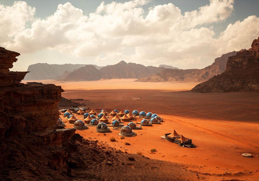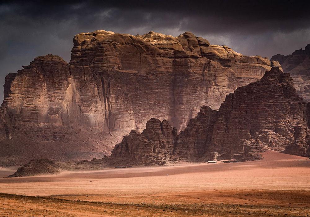 Wadi Rum, Jordaniens größtes Wadi in der Hisma-Wüste, wurde 2011 von der UNESCO als Weltkultur- und Naturerbe anerkannt. Lawrence von Arabien beschrieb die Landschaft als „unermesslich und göttlich“. Das 74.000 Hektar große Schutzgebiet bildet zusammen mit Petra und Aqaba das „Goldene Dreieck“ Jordaniens und gehört zu den wichtigsten touristischen Attraktionen des Landes.